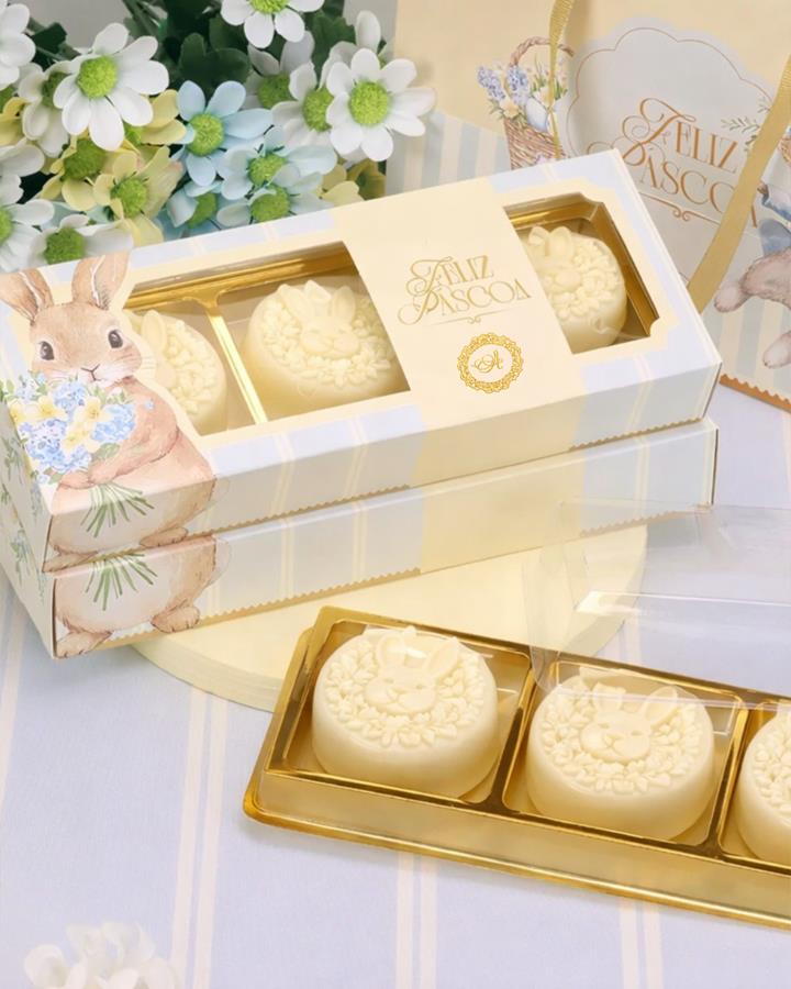 Kit com 3 sabonetes em barra de 90g cada, cada unidade com um desenho temático de Páscoa, trazendo delicadeza e encanto em cada detalhe. A apresentação valoriza o conjunto, tornando-o uma opção charmosa e especial para presentear nesta data.