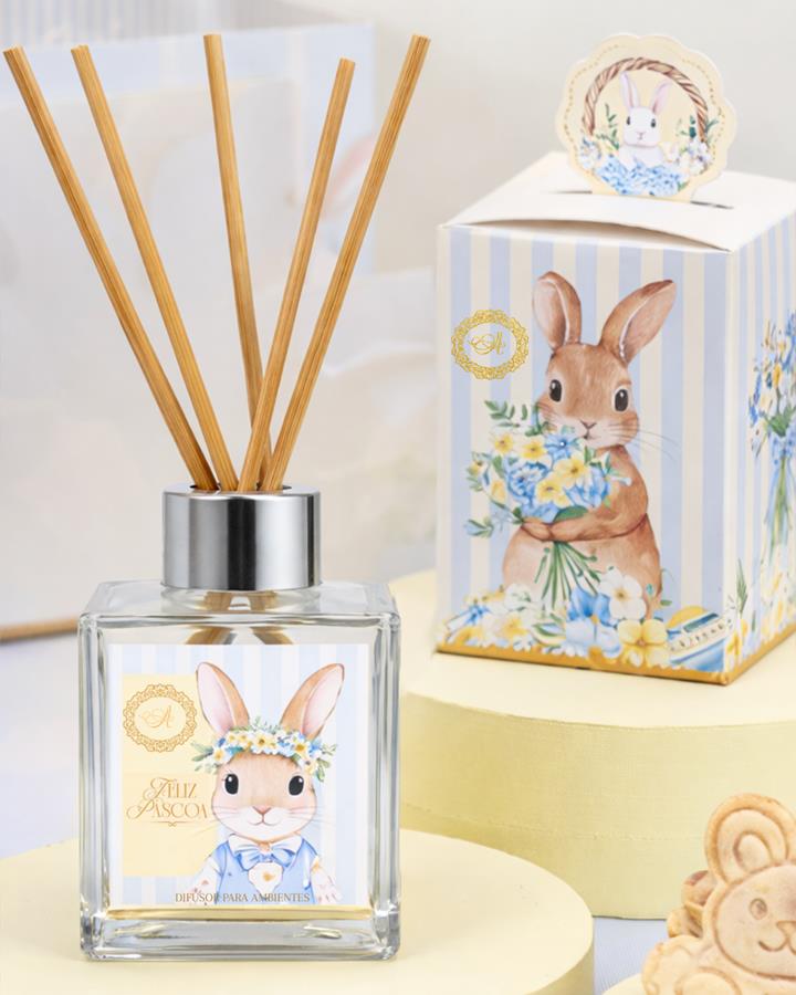 Difusor de ambientes 100ml em vidro, com design elegante e acabamento refinado, ideal para perfumar o ambiente de forma contínua e suave. Acompanha uma caixinha lindíssima de Páscoa, perfeita para presentear com charme e sofisticação.